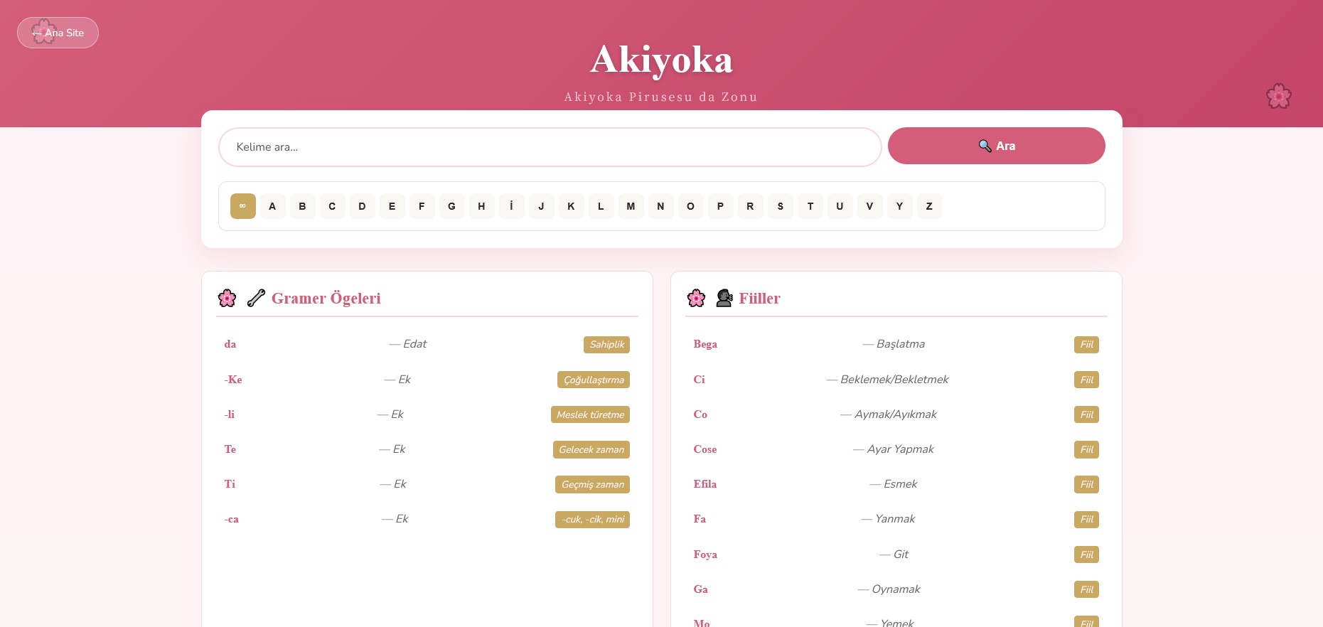 Hâyâli ülkemin ana dilini üretirken, Türkçe-Akiyoka sözlük sitesi yaptım.